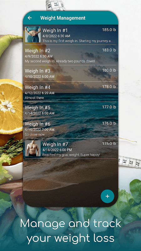✔ Weigh Ins ช่วยให้คุณเพิ่มภาพถ่ายและบันทึกของคุณเองทำให้คุณเห็นความคืบหน้าของคุณได้อย่างง่ายดาย