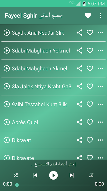 يتضمن التطبيق جميع أغاني الشاب فيصل الصغير التالية :