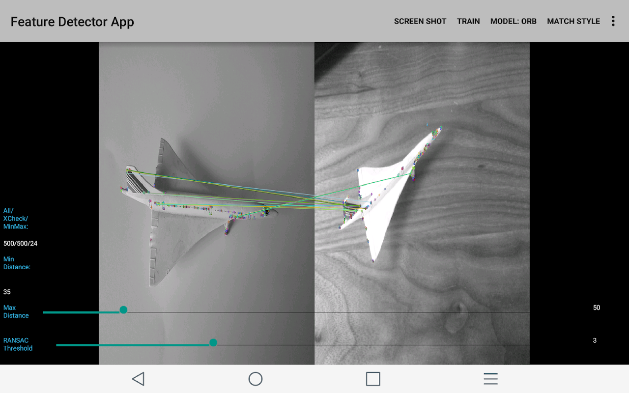 Source Code is at: https://github.com/rwoodley/SteamSpace/tree/master/AndroidApps/FeatureDetectorApp