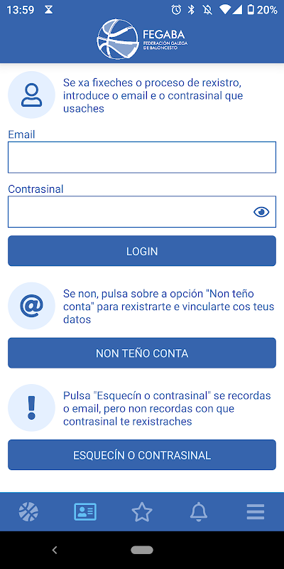 สนุกกับบาสเก็ตบอลด้วยการสมัครอย่างเป็นทางการของสหพันธ์บาสเกตบอลกาลิเซีย ข้อมูล ปฏิทิน ผลลัพธ์ อันดับ และอื่นๆ ทั้งหมดไม่ใช่อุปกรณ์เคลื่อนที่