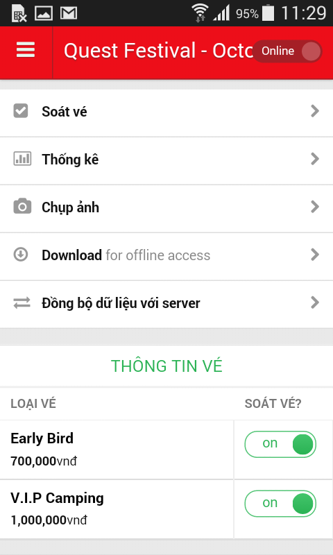 - Đồng bộ dữ liệu và soát vé offline không cần kết nối internet.