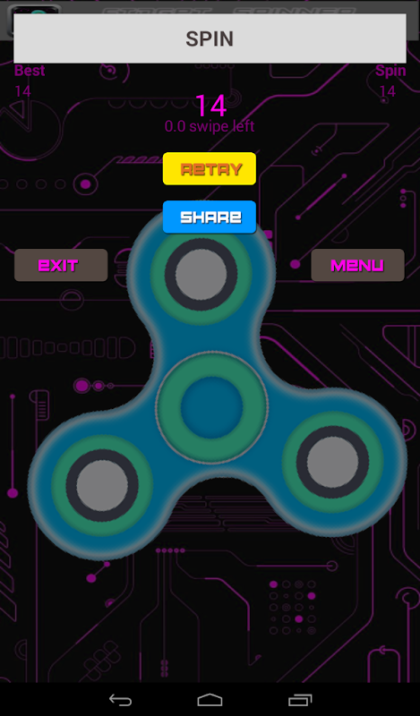 You have 4 swipes to set the best spin you can. Wait for it to stop and sweep the sweet rewards! Select the spinner from 10+ awesome Glowing spinners, compete with your friends and beat the records!