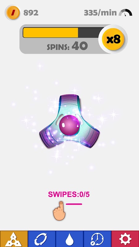 You have total 5 swipes to set the best spin record. Wait for it to stop and sweep the sweet bonus! Upgrade the spinner, compete with your friends and beat the records!