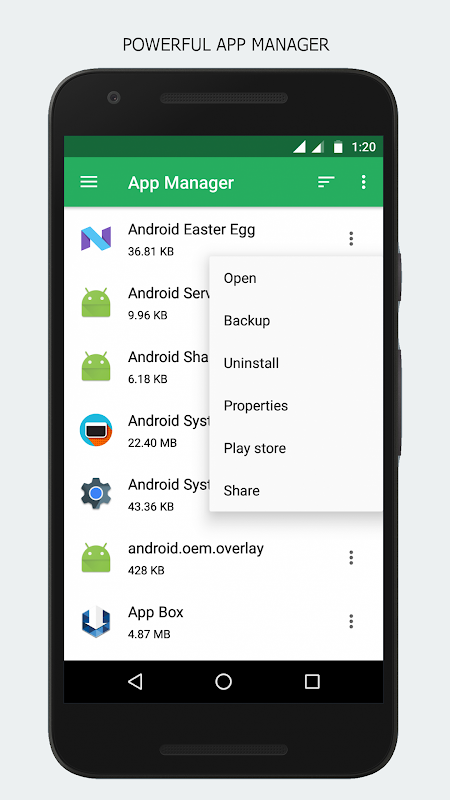 ★ Application Manager: Categorize, Open app, Open play store page, Uninstall, Backup, and Share your apps.