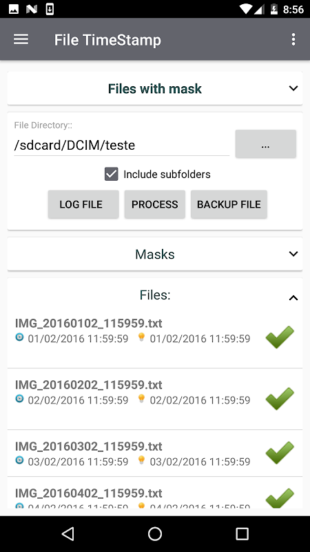 Display list of files before processing, with information of current timestamp and obtained through mask or EXIF.