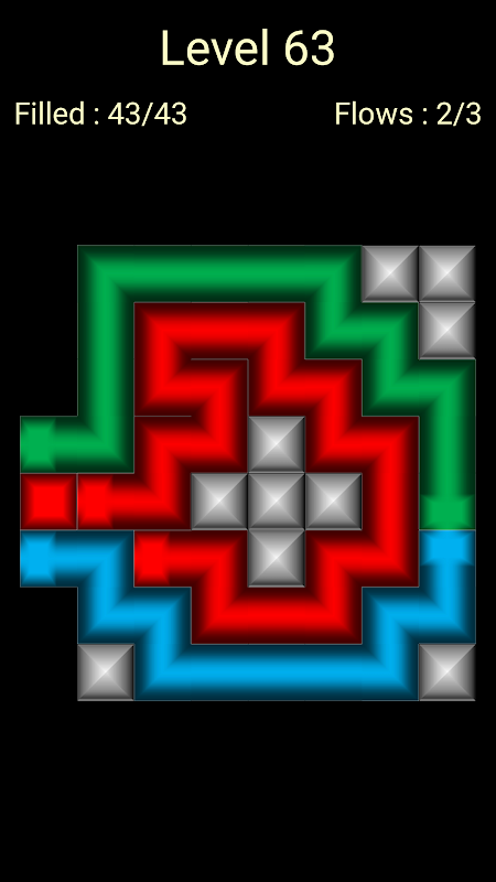 Filling Flow is a puzzle game. Find the paths between two pipes to connect them, being careful to fill all the squares of the game board.