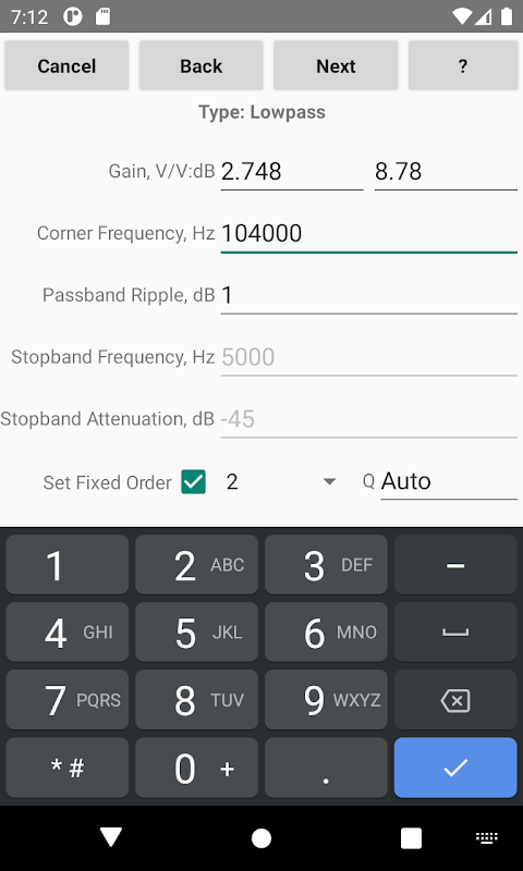 ย้อนกลับ: การคำนวณพารามิเตอร์ตัวกรองที่ค่าที่ทราบของส่วนประกอบ