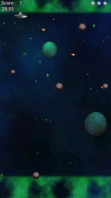 คลิกบนหน้าจอเพื่อต่อต้านแรงโน้มถ่วงและทำลายดาวเคราะห์น้อย! เก็บเพชรจำนวนมากและทำลายดาวเคราะห์น้อยมากที่สุดเท่าที่เป็นไปได้ ขนาดการประชุมสุดยอดของผู้นำและถึงจุดสิ้นสุดของเกม!