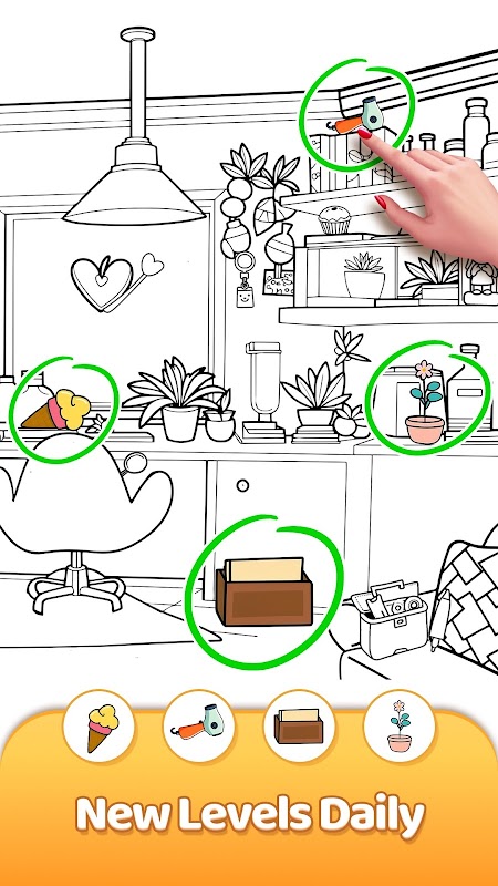 เมื่อติดขัด ให้ใช้คำใบ้เพื่อค้นหาสิ่งของที่ซ่อนอยู่ได้อย่างง่ายดาย ซูมเข้าและซูมออกได้ตลอดเวลาเพื่อดูทุกมุมและไม่พลาดเบาะแส