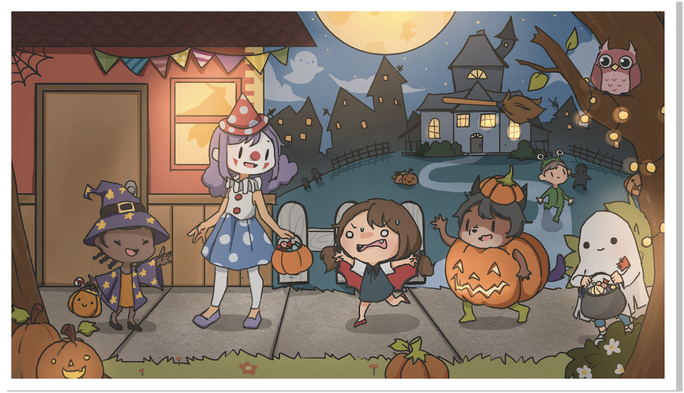 แต่ละด่านเต็มไปด้วยรายละเอียดอันน่าดึงดูดและสิ่งของที่ซ่อนอยู่ที่รอการค้นพบ ไม่ว่าคุณกำลังมองหาผีในต้นไม้ ของเล่นที่หายไป หรือฟักทองที่ปลอมตัว ทุกฉากคือการผจญภัย!