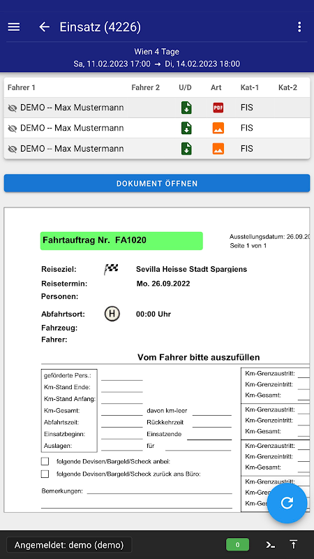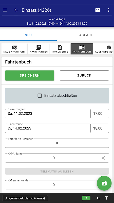 แอป FIS ยังเหมาะสำหรับการย้อนรอย คนขับสามารถใช้มันเพื่อเก็บสมุดบันทึกของเขาและป้อนกิโลเมตรที่ขับ ซึ่งเป็นข้อมูลที่ภายหลังจะเป็นพื้นฐานสำหรับการเรียกเก็บเงินและสามารถประมวลผลเพิ่มเติมในโมดูลการเช่าและในโปรแกรมการท่องเที่ยวของ RATIOWw และ TouPac