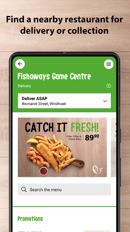 ใช้แอปพลิเคชันนี้เพื่อสั่งซื้อจากร้านอาหารฟิชชิ่งในนามิเบีย