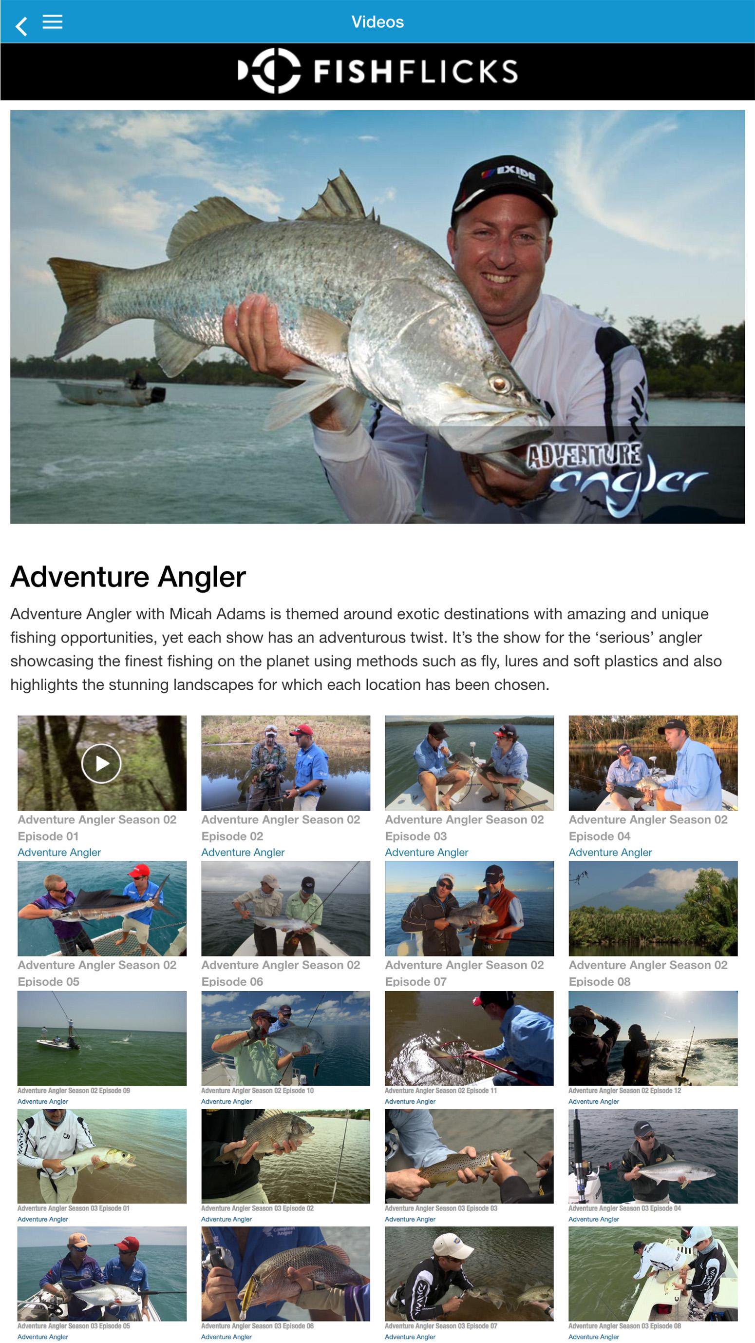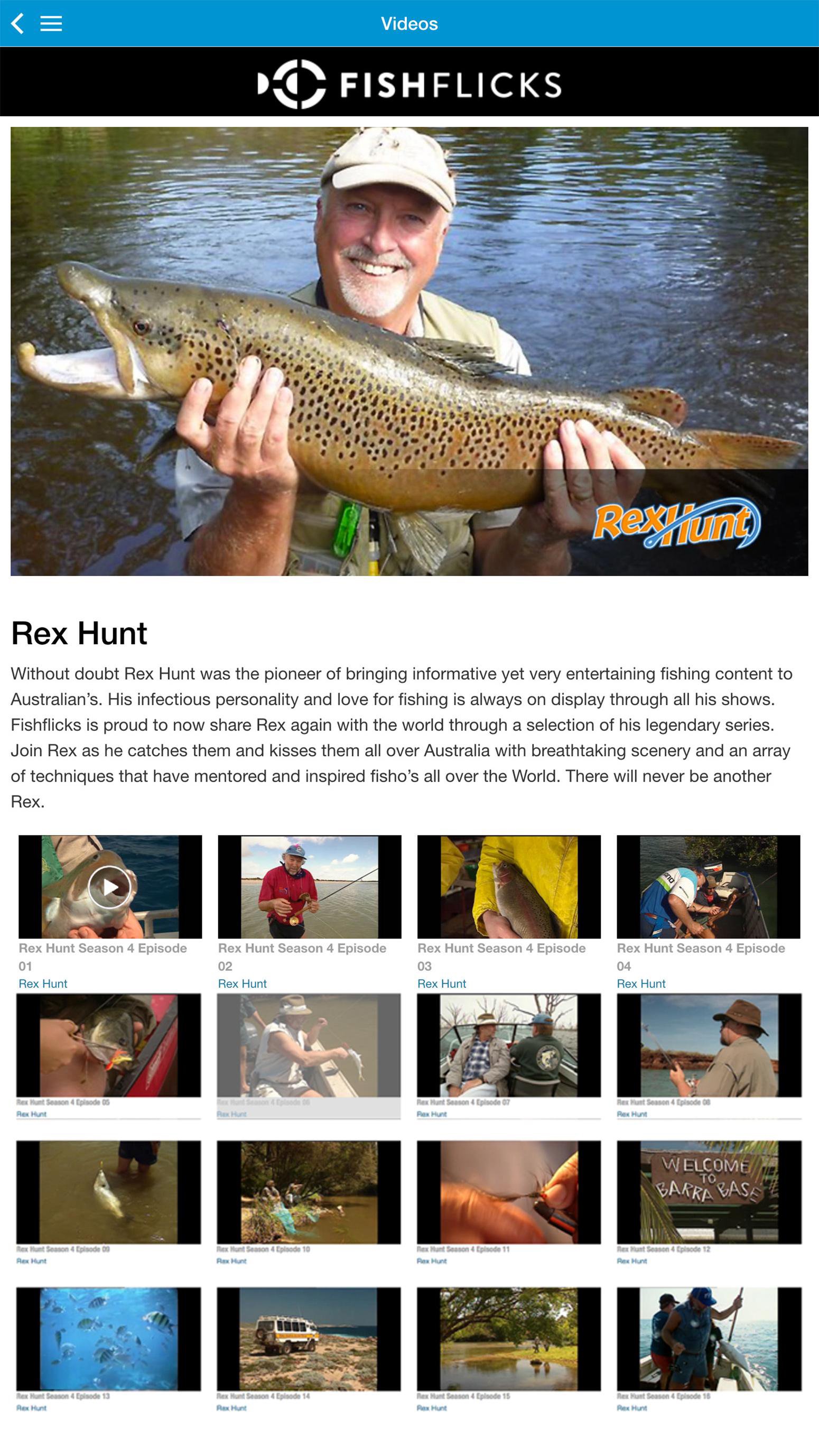 Check out your favourite shows like Rex Hunt, Escape with ET, Hook Line and Sinker, Mark Berg’s Fishing Addiction, Lee Rayners Fishing Edge, Micah Adams Adventure Angler, Michael Guest’s Reel Action, IFish and many more. That’s hundreds and hundreds of hours of non stop Fishing, hunting and 4WD action on demand, 24 hours a day.