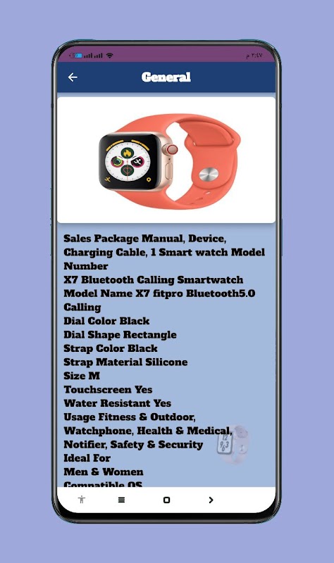 - ข้อมูลจำเพาะของนาฬิกาอัจฉริยะ fitpro x7