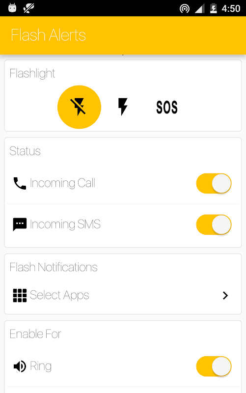 แอปพลิเคชันนี้จะใช้แฟลชกล้องถ่ายรูปของคุณเพื่อทำการแจ้งเตือนในขณะที่โทรศัพท์ของคุณดังขึ้นหรือได้รับข้อความแจ้งเตือนใหม่