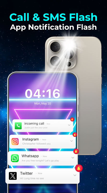 🎉 Party Mode: Planning to throw a party? Our flashing lights app will set the mood with its disco light feature. Change the color of the flash alert flash and let the LED light up your celebration!