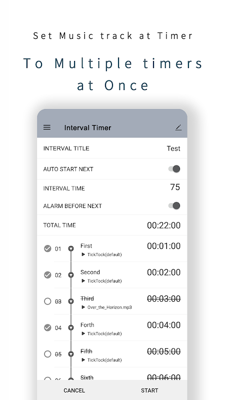 แทนที่จะใช้เสียงเริ่มต้นของ tiktock ผู้ใช้สามารถเลือกไฟล์เพลงอื่นในเครื่องได้