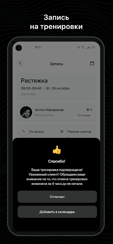 แอปพลิเคชั่นมือถือสำหรับลูกค้าฟิตเนสคลับและสตูดิโอกีฬา