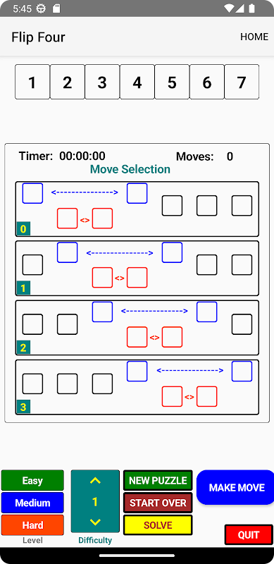 จัดเรียงลำดับตัวเลขสุ่มเป็นลำดับที่เพิ่มขึ้นโดยใช้เครื่องมือ "พลิก" ที่ไม่ซ้ำใคร ซึ่งคุณสามารถเลือกและสลับกลุ่มตัวเลขสี่ตัวด้วยความแม่นยำเชิงกลยุทธ์ ด้วยระดับทักษะสามระดับ (ง่าย ปานกลาง ยาก) และระดับความยากเก้าระดับ Flip Four มอบความสนุกที่ฝึกสมองไม่รู้จบสำหรับทั้งผู้เริ่มต้นและผู้เชี่ยวชาญ ทดสอบการมองการณ์ไกล วางแผนการเคลื่อนไหว และเอาชนะปริศนาที่ต้องใช้การคิดเชิงกลยุทธ์เช่นเดียวกับหมากรุกหรือความเสี่ยง