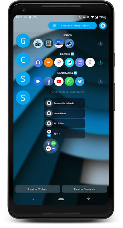 Tip: To Remove/Pin Floating Shortcuts/Folders Press & Hold to see Options