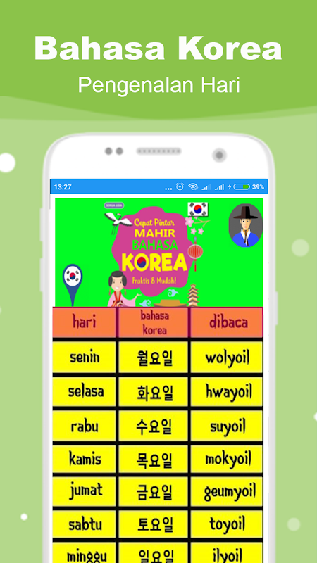 This everyday Korean application contains daily Korean conversation and its meaning so that it will make you smart to talk with foreigners who come at any time to travel to our country. Applications Learning Korean 2019 - The latest is an android-based application that contains about learn Korean for beginners, even more advanced in Korean.