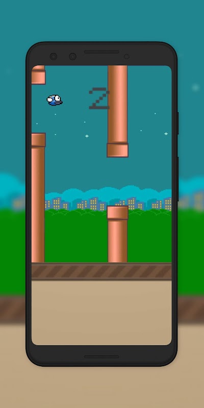 Play flupy bird game with flappy type, tap to jump and fly bird to avoid pipes.