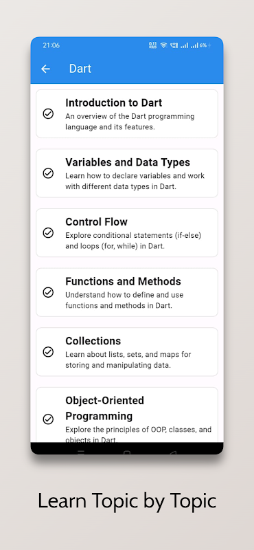 📱 การเรียนรู้เชิงโต้ตอบ: ฝึกฝนทักษะของคุณภายในแอปโดยใช้โปรแกรมแก้ไขโค้ดเชิงโต้ตอบของเรา เขียน เรียกใช้ และทดลองใช้โค้ด Flutter เพื่อเสริมความเข้าใจของคุณ