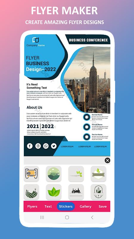 ยกระดับการส่งเสริมกิจกรรม โฆษณาธุรกิจ และไอเดียสร้างสรรค์ของคุณสู่ระดับใหม่ด้วย Flyer Maker - Flyer Designer แอปนี้ช่วยให้คุณสามารถออกแบบแผ่นพับโฆษณาแบบมืออาชีพและสะดุดตาได้ในเวลาเพียงไม่กี่นาที โดยไม่ต้องมีความสามารถด้านการออกแบบกราฟิก! ไม่ว่าคุณกำลังวางแผนจัดงานปาร์ตี้ ส่งเสริมการขาย หรือประกาศกิจกรรมพิเศษ แอปนี้มีทุกสิ่งที่คุณต้องการเพื่อให้การออกแบบของคุณโดดเด่น