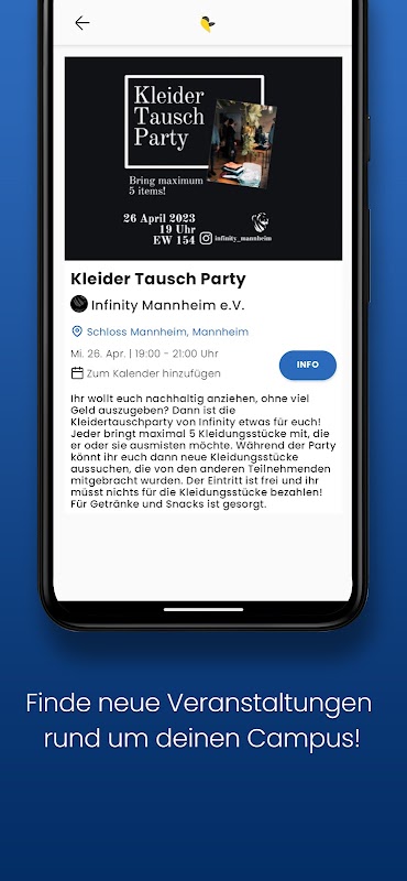 Flyra เป็นแอพที่ดีที่สุดสำหรับนักเรียนทุกคน! ด้วย Flyra คุณจะเห็นภาพรวมของเหตุการณ์ปัจจุบันและความคิดริเริ่มที่เกี่ยวข้องกับชีวิตในมหาวิทยาลัย ไม่พลาดงานเลี้ยง งานสัมมนา หรือเวิร์กชอปอีกต่อไป และเป็นคนแรกที่ค้นพบข้อเสนอและโอกาสใหม่ๆ ทุกอย่างที่เคยแจกจ่ายผ่านใบปลิวสามารถดูได้อย่างรวดเร็วในแอป Flyra - เพื่อนร่วมมหาวิทยาลัยส่วนตัวของคุณ ดาวน์โหลดแอพทันทีและอัพเดทอยู่เสมอ! และสิ่งที่ดีที่สุดเกี่ยวกับเรื่องนี้: คุณช่วยหลีกเลี่ยงเศษกระดาษจากใบปลิว และช่วยให้มหาวิทยาลัยของคุณมีความยั่งยืนมากขึ้น