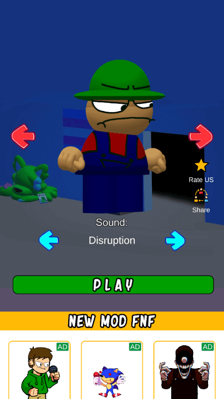 จะทำอย่างไรในเกม FNF Baldi Golden Apple Mod Test Character? ทุกอย่างเรียบง่าย! คุณต้องทำคะแนนให้ได้มากที่สุด ในการดำเนินการนี้ ให้คลิกที่ลูกศรบนหน้าจออุปกรณ์ของคุณหลังจากที่คุณเริ่มเกมแล้ว หลังจากการคลิกแต่ละครั้ง ฮีโร่จะร้องโน้ตและทำการเคลื่อนไหวบางอย่าง และคุณจะได้รับคะแนน ผลคะแนน 800 คะแนน ถือเป็นผลการแข่งขันที่ดี หากคุณทำคะแนนได้มากกว่า 1,000 คะแนน แสดงว่าคุณเก่ง FNF Baldi Golden Apple Test