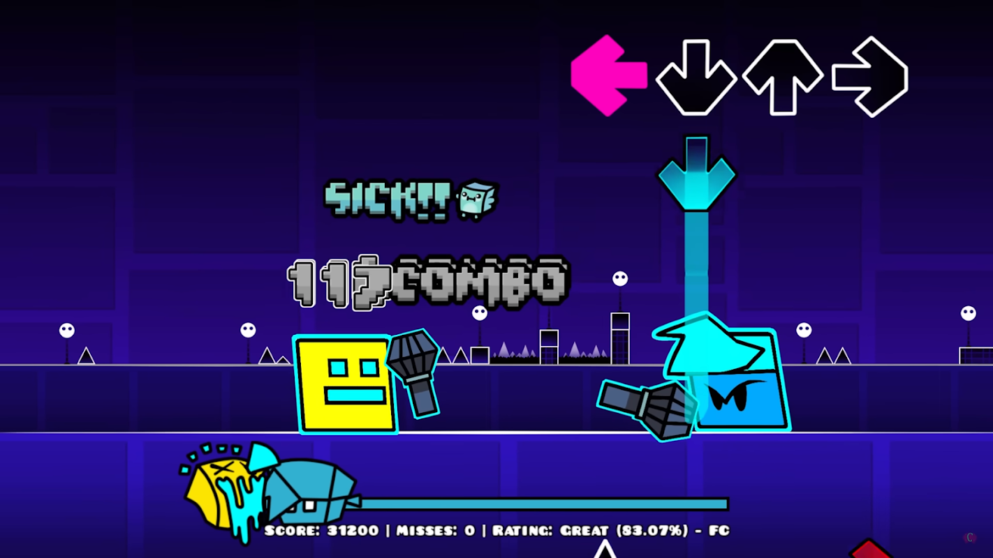 เกม FNF MOD เรขาคณิตในคืนวันศุกร์นี้ทำงานได้อย่างไม่มีที่ติ คุณสามารถเล่นได้โดยใช้ปุ่มสี่ปุ่มเพื่อสร้างเพลงฮิตที่ไม่ซ้ำใครใน FNF beat music battle