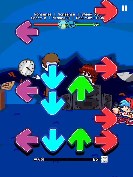 เพียงแตะที่ลูกศรเมื่อจับคู่ได้ลงตัวเพื่อรับคะแนนสูงสุด สัมผัสจังหวะฟังกิ้นที่น่าทึ่ง ร็อคไปตามจังหวะ พยายามอย่างเต็มที่เพื่อปลดล็อกเพลง FNF ทั้งหมดเพื่อให้มีสัปดาห์เพียงพอ
