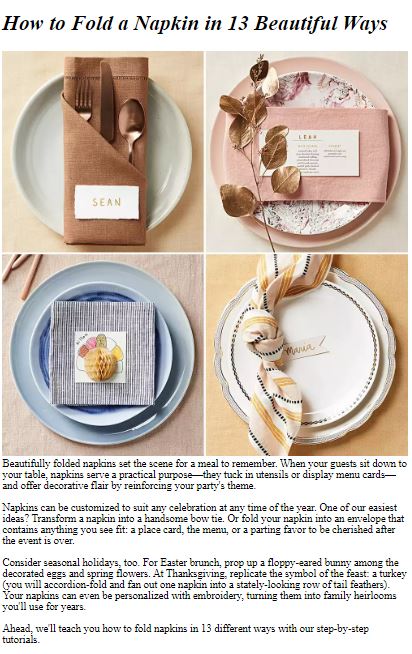 เกี่ยวกับ Fold Napkins Tutorial
