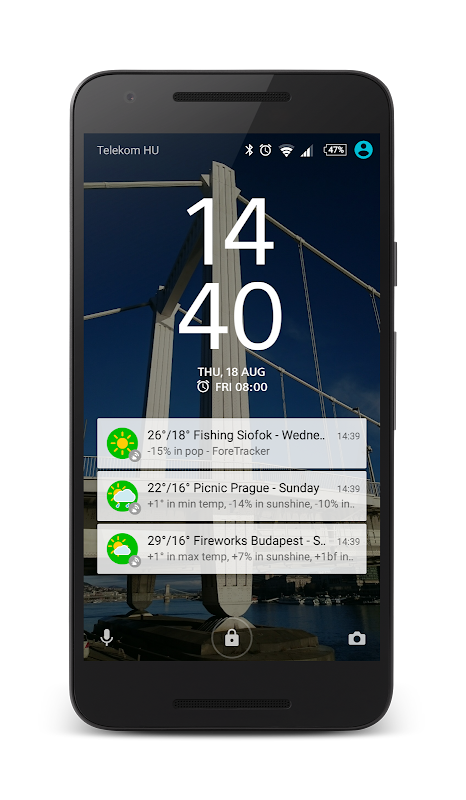 Finally, an app that not only shows the weather for the following days, but also the exact times and locations that are most important to you. Put the ForeTracker widgets on the home screen, so for example on your weekend excursions, you'll always see what kind of weather to expect. Immediately find out any forecast changes of a specific time, so there will never be any unwanted surprises at your event. On the other hand, it allows you to always be prepared and plan ahead, so that you are able to make alternative arrangements if things start to go downhill. The app aids in setting up a party or special moment, such as date and location – allowing you to easily make the right decisions. You do not need to look all over for a specific forecast, as it is all done in the ForeTracker app, with multiple weather providers that are intelligently watched to ensure that you use minimal data.