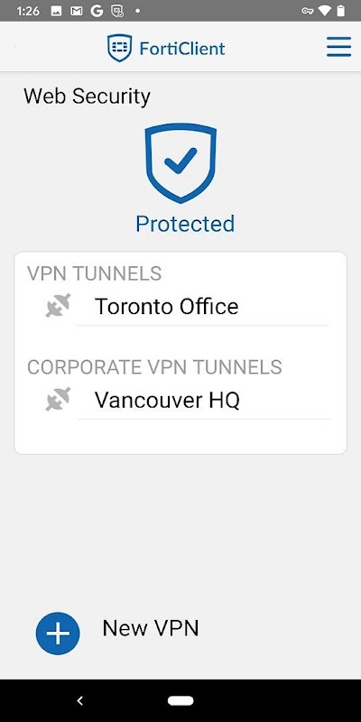 FortiClient - แอพ Security Fabric Agent ให้ความปลอดภัยปลายทางและการมองเห็นใน Fortinet Fabric นอกจากนี้ยังช่วยให้คุณเชื่อมต่ออุปกรณ์เคลื่อนที่โรมมิ่งของคุณกับเครือข่ายองค์กรได้อย่างปลอดภัย (ผ่าน IPSEC หรือ SSL VPN) คุณสมบัติ Web Security ช่วยปกป้องโทรศัพท์หรือแท็บเล็ตของคุณจากเว็บไซต์ที่เป็นอันตรายและเนื้อหาเว็บที่ไม่ต้องการ เมื่อใช้การเชื่อมต่อ Virtual Private Network (VPN) ระหว่างอุปกรณ์ Android ของคุณกับ FortiGate การรับส่งข้อมูลอุปกรณ์ทั้งหมดจะถูกเข้ารหัสอย่างสมบูรณ์และส่งผ่านอุโมงค์ที่ปลอดภัย