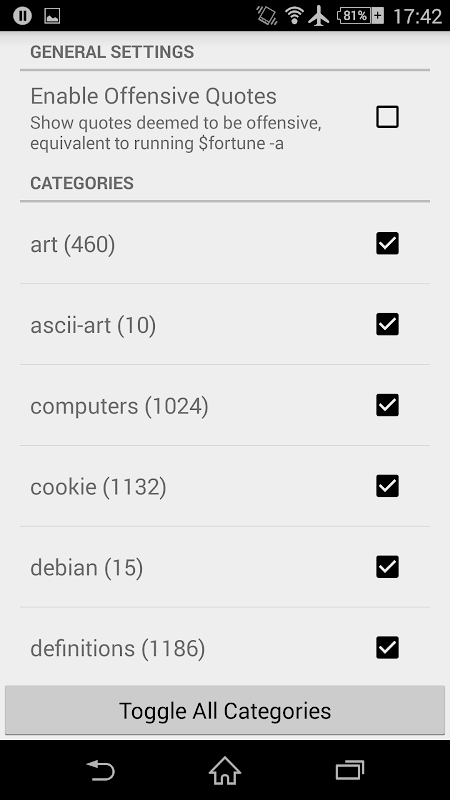 พวกเขาทั้งหมดจัดเป็นหมวดหมู่ที่คุณอาจเลือก / ยกเลิกการเลือกตลอดจนการเลือกว่าคุณต้องการจะดูใบเสนอราคาที่ถือว่าเป็นที่น่ารังเกียจ