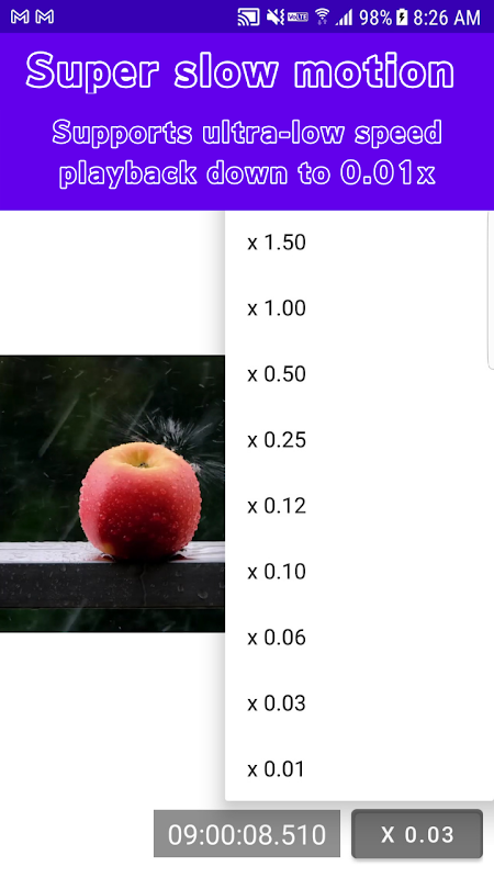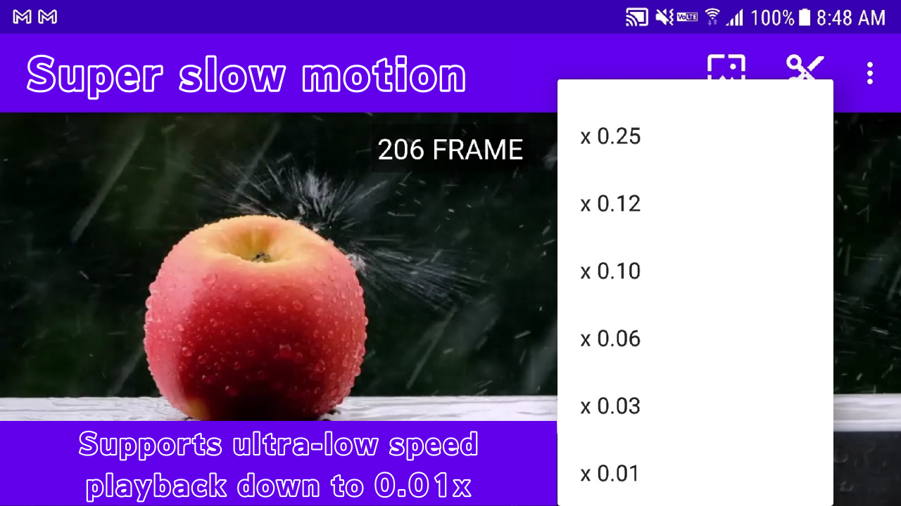 นอกเหนือจากความเร็วในการเล่นปกติแล้ว แอปพลิเคชันนี้รองรับการเล่นแบบซูเปอร์สโลว์ที่ 0.25x ถึง 0.01x ไม่พลาดช่วงเวลาสำคัญ!