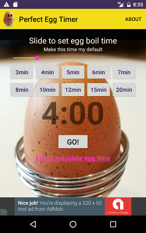 * ใหม่ ให้เราคำนวณเวลาไข่ที่สมบูรณ์แบบของคุณ เลือกลิงค์ภายใต้ GO! ปุ่ม.