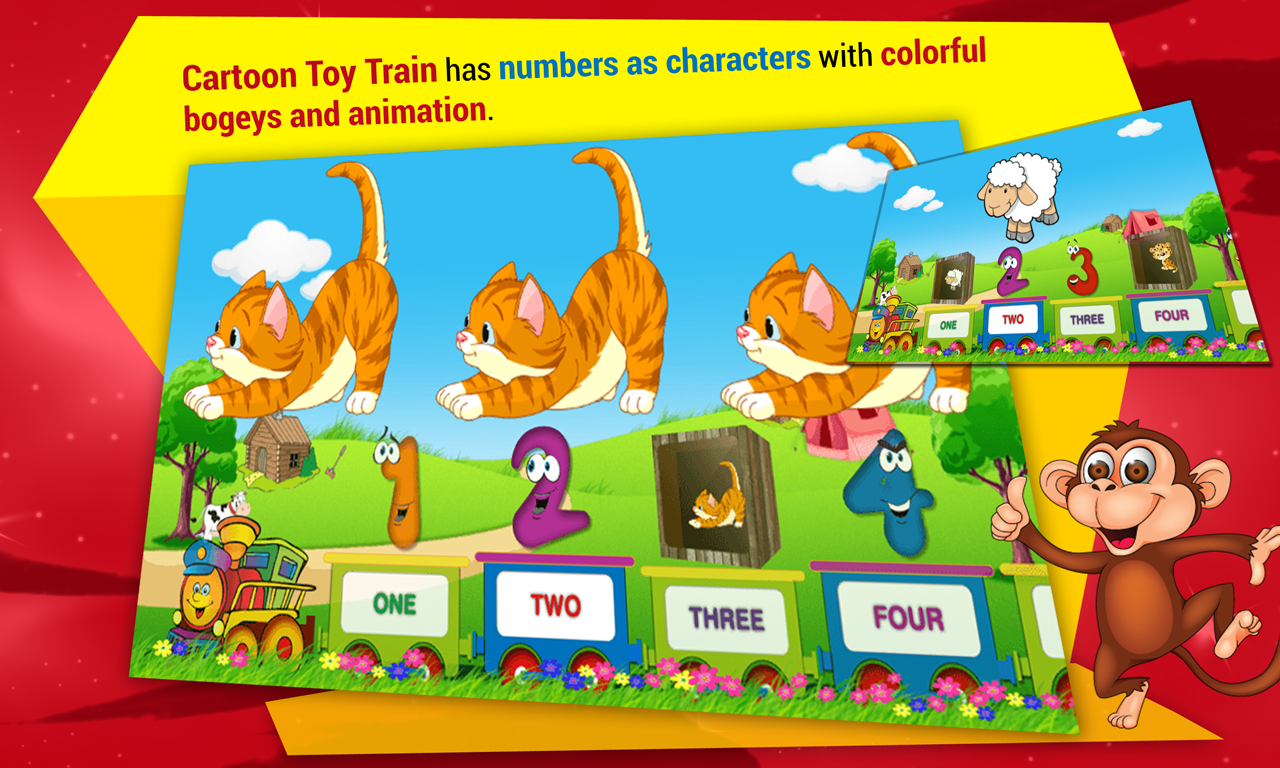 4.Cartoon train is a toy train with number as characters with colorful bogeys, peppy sound and nice animations.