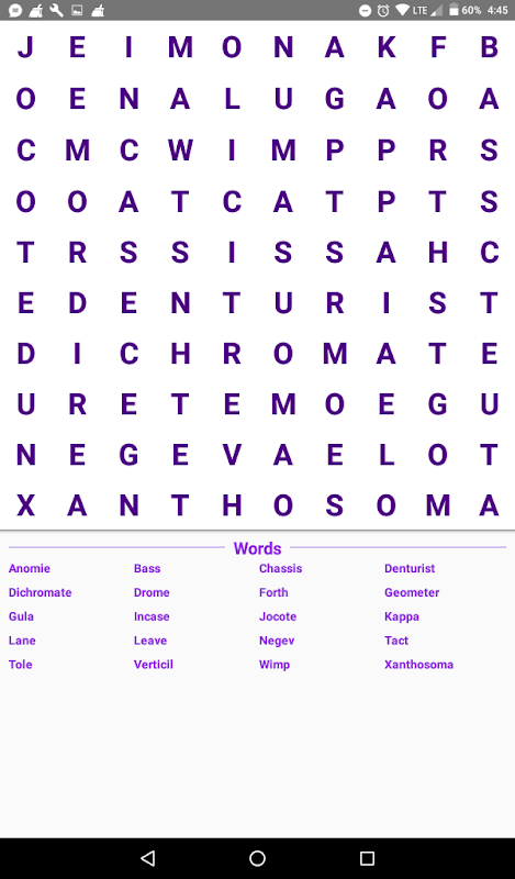 The main goal of this game app is to find all the hidden words from list . This game app available in 17 language .