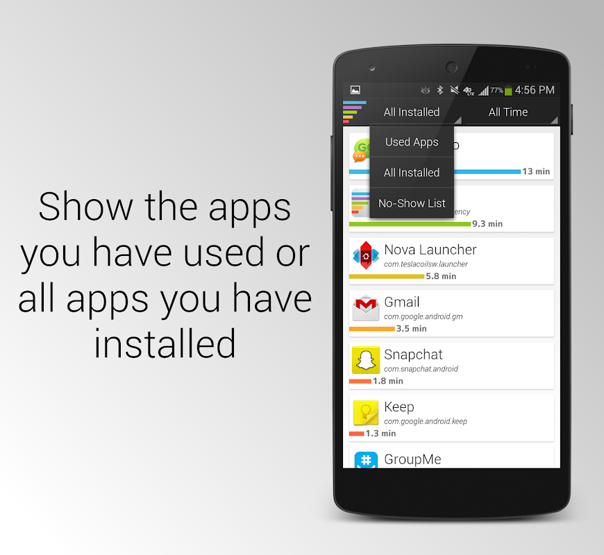 ✓ View all apps you have used in the timeframe, or all apps you have installed in the timeframe