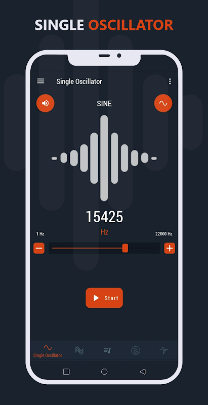 เลือกโทนเสียงเดี่ยวหรือหลายโทนเสียง และปรับความถี่และระดับเสียงด้วยการควบคุมที่แม่นยำ แถบเลื่อนเชิงเส้นและลอการิทึมช่วยให้สามารถปรับแต่งได้อย่างละเอียดและสำรวจช่วงกว้าง