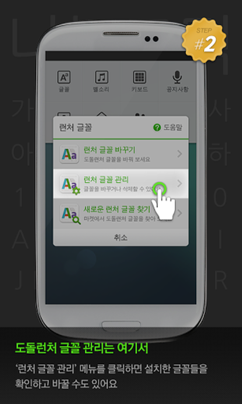 2. Select the 'Fonts' icon in the home screen or select the 'more > fonts'menu.