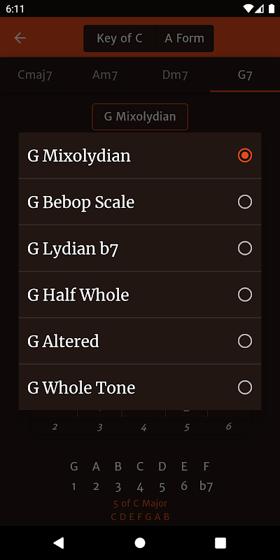 ความแตกต่างจากแอปพลิเคชั่นอื่น ๆ ของฉัน "FretBuzz" คือแอปพลิเคชั่นนี้จัดระเบียบเครื่องชั่งในแง่ของความก้าวหน้าทั่วไปในดนตรีแจ๊ส