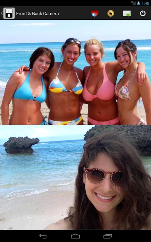 By using sequentially both the front and back cameras from your phone, this application will turn your phone into an amazing camera, allowing you to appear in the photo you are taking! Both pictures will be combined to produce an awesome image that will capture the pic and photographer in the same frame.