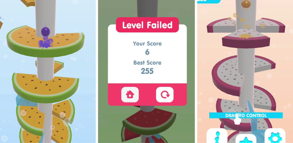 ในขณะที่คุณทิ้งเหมือนลูกบอลผลไม้ผ่านหอคอยเกลียวที่มีสีสัน คุณจะพบกับอุปสรรคและกับดักต่าง ๆ ที่จะทดสอบกลยุทธ์และทักษะของคุณ ทำผิดเพียงครั้งเดียวและเกมจบลง! แต่ไม่ต้องกังวล มีวิธีปลดปล่อยลูกไฟในตัวคุณและพิชิตเกม คุณสามารถเร่งความเร็วเหมือนคนบ้าหรือรอจังหวะที่สมบูรณ์แบบเพื่อเล่น ม้วนตัว และกระโดดเพื่อไปสู่ชัยชนะ