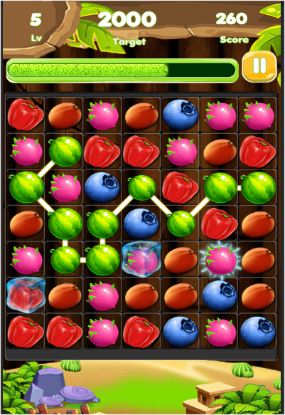 Enjoy adventure and have a relaxed game Fruit Line Matching 2 or more Fruit Link by putting them on the same line!