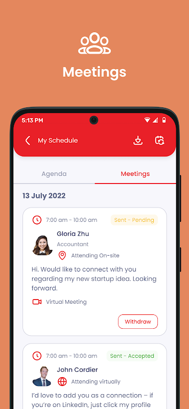 แอพนี้จะเป็นเพื่อนคู่หูของคุณไม่เฉพาะในช่วงกิจกรรม แต่ยังรวมถึงก่อนและหลังการประชุมสุดยอดด้วย ช่วยให้คุณ:
