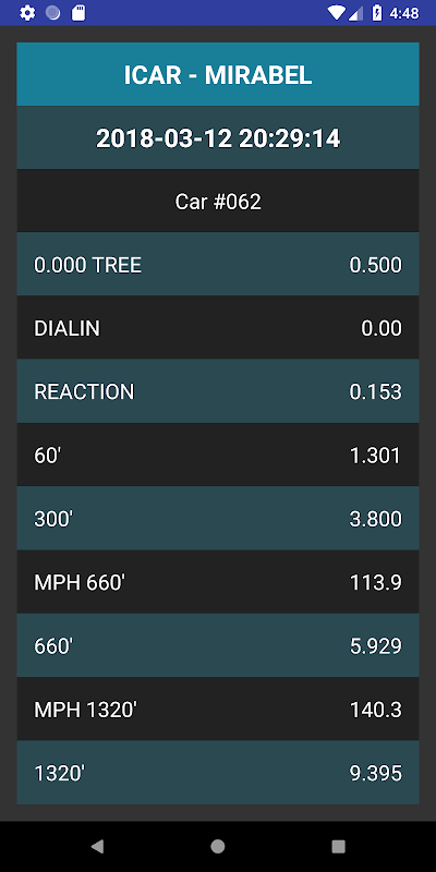 Use this app to review all your drag racing time slips at the iCar drag racing track!