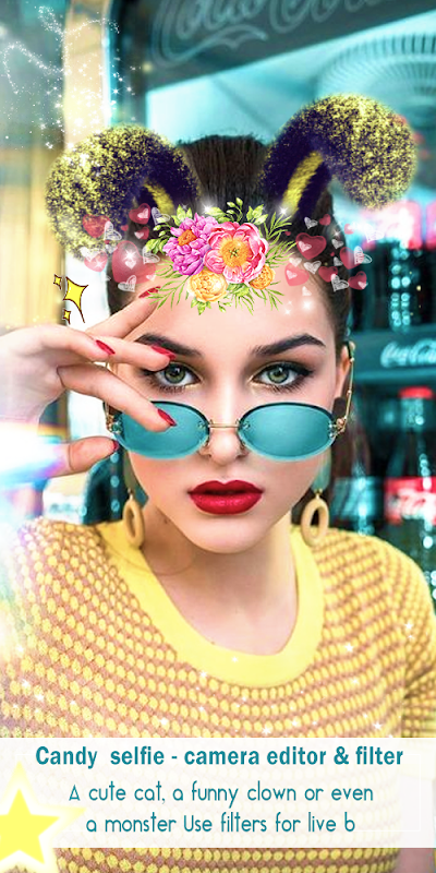 Make your selfies cool with candy selfie – camera editor & filter. Add face filters and effects, try out the new heart crown, light crown and flower crown effects. switch filters Juno, Mayfair and Valencia. Create your own stylish pictures with bokeh effect, glitter, blur and light leak effect.